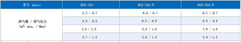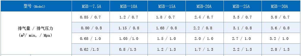 MSB系列(皮帶傳動)螺桿式空氣壓縮機技術(shù)參數(shù)(30kW-45kW)