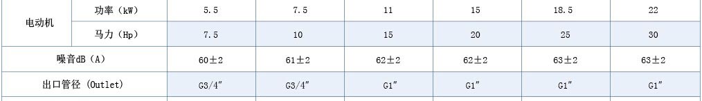 MSB系列(皮帶傳動)螺桿式空氣壓縮機技術(shù)參數(shù)(5.5kW-22kW)