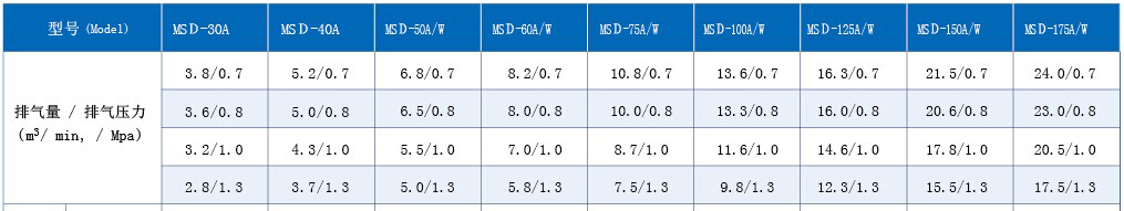MSD系列(直聯(lián))螺桿式空氣壓縮機技術(shù)參數(shù)(22kW-132kW)
