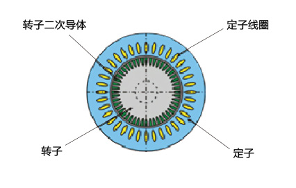 利用定子線圈交流電產生的旋轉磁場,使轉子(二次導體)產生感應電流,從而帶動轉子轉動。